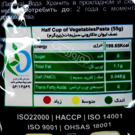 ماکارونی فرمی شلز سبزیجات زر ماکارون 500 گرمی