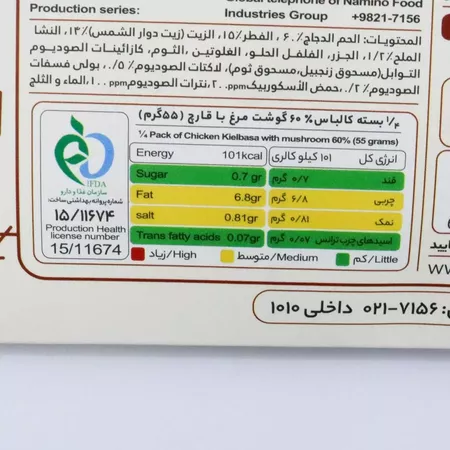 کالباس مرغ و قارچ 60% نامی نو 250 گرمی