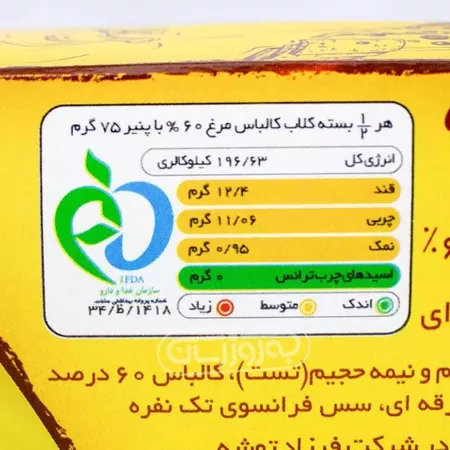 ساندویچ کلاب کالباس 60% گوشت مرغ با پنیر ورقه ای نامی نو - دارای 6 روز تاریخ مصرف